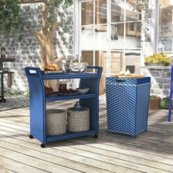 New β Furniture Of America Courtnie Wicker 2-piece Bar Cart & Trash Can Set Gray π