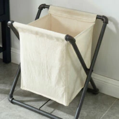 Best Sale ๐ Furniture Of America Linley Sand Black Foldable Laundry Hamper ๐