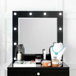 Budget π Furniture Of America Mary LED-light Bulb Mirror With Outlets & USBs Black π―