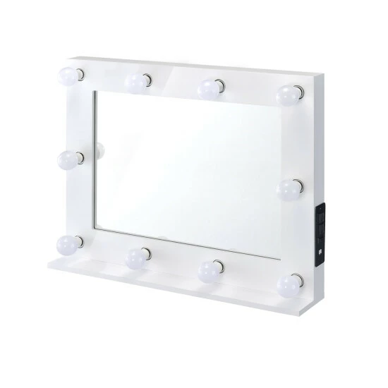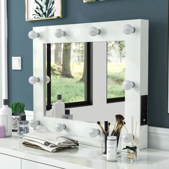 Turn any tabletop into your newest hair and makeup spot with this modern lighted vanity mirror. Bright lights and a clean, sleek design are a charming upgrade to any bedroom or dressing area, and a power panel with power and USB outlets add convenience.
