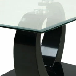 - ELEGANT – Clear glass tabletops feature a beveled edge for a finished look