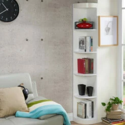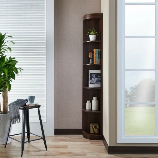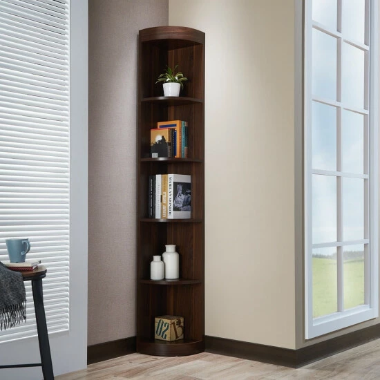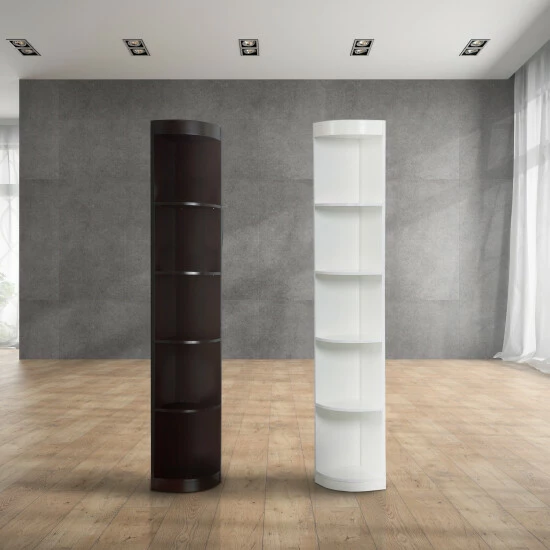 Add a decorative look to your home with this corner display stand from Furniture of America. Its sleek but spacious shelves are perfect for displaying decor, storing a collection of books, or showing off framed pictures of family, friends, and favorite destinations. Available in multiple finishes to complement any color palette, and a design that coordinates with any decor style, this display stand will find a perfect spot to perch in your home.