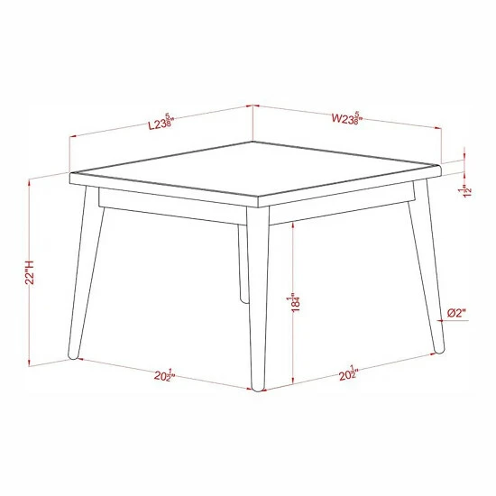 - Overall dimensions: 22 inches high x 23.63 inches long x 23.63 inches wide