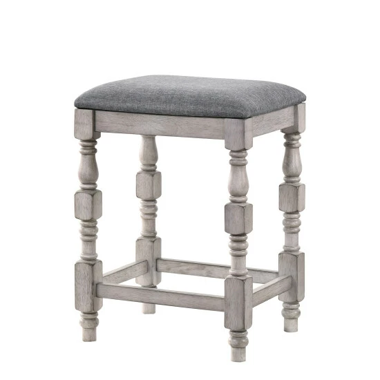The farmhouse rustic style set of two counter height stools is a unique and stylish seating arrangement to add to your home bar. Turned leg supports give a room novel design. This stool comes in a multitude of tones that work in transitional interior decor types. This piece presents a cottage characteristic with a taste of chic, making an inviting impression in your space. Not only will you find comfort in the footrests of this stool, but you’ll develop an appreciation for the careful construction. Made by Furniture of America for the Adagio collection, this stool is fit for rustic, farmhouse, and coastal or nautical themes.