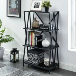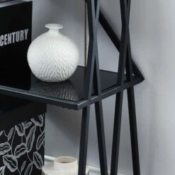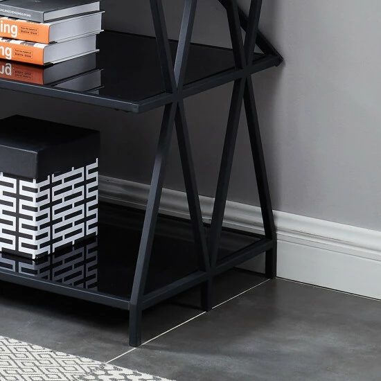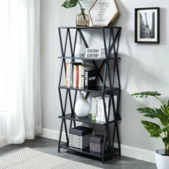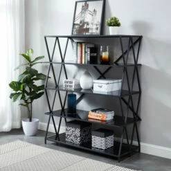 To characterize your room with the least amount of furniture, it’s essential to select dynamic pieces. One such item is this black metal and tempered glass bookcase, made by Furniture of America for the Albaric collection. Its intricate crossing lines catch the eye, but its sleek black shelves hold the attention. A geometric frame gives it style and structure with double X accents on the frame. This piece boasts multiple roomy shelves for displaying house plants, collections, and books. It’s made with a sturdy metal frame to provide incredible support and stability. With its metallic black finish, this bookcase is bound to serve as an exceptional focal point in your living area.