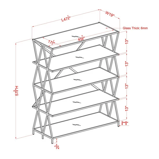 - Overall dimensions: 57.5 inches high x 47.25 inches wide x 19.25 inches deep