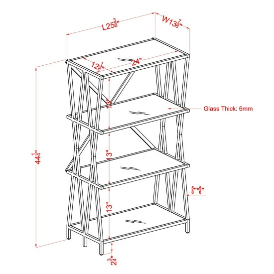 - Overall dimensions: 44 inches high x 23.25 inches wide x 13.7 inches deep