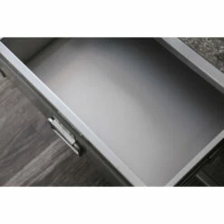 Create your own trendy Industrial inspired retreat starting with this three piece bedroom ensemble. The panel headboard and footboard of the metal constructed bed are embellished with a variegated hand brushed silver finish. The matching nightstands each feature a spacious drawer with metal drop drawer pulls and an open lower compartment to afford ample storage for reading materials and bedside essentials. Explore all of the matching pieces to customize and create your modern Industrial inspired bedroom retreat.