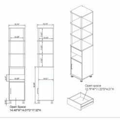 - Overall: 72.3 inches high x 15.74 inches wide x 15.74 inches deep