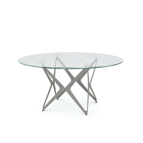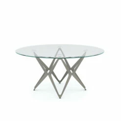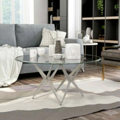 A fascinating design with a multi-angled steel base energizes a room with excitement in this modern coffee table. Each leg has a front-facing diamond shape, but when seen at an angle the leg reveals a boomerang-inspired look. The pin-like leg design offers an open and airy atmosphere to your living room decor. These four legs come together to form an interstellar scheme. They lift up a disk-like 8mm tempered glass tabletop with a sleek beveled edge. Silver hardware secures the clear glass for a clean modern appeal. The champagne finished legs are ultra chic and lend a trendy application to your contemporary living room, home office, or bedroom. Poised on floor levelers, there is no concern for how the table will stand on any kind of floor surface. What’s more, the table is easily assembled in three simple steps. This is ideal for the adventurous character who loves to settle in different places.
