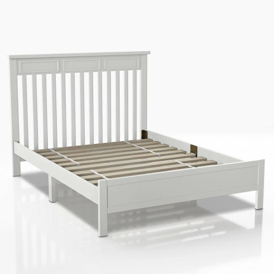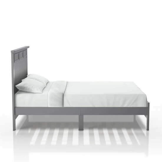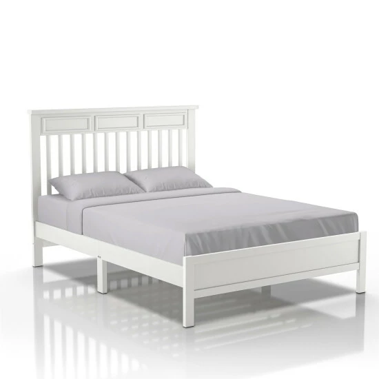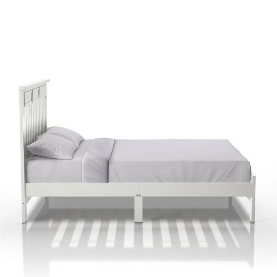 Furnish your bedroom in simple classic style with traditional full-size platform bed from the Furniture of America Amanda collection, with an elegant slated design in the straight, paneled headboard for a unique look. Built with a solid wood construction of New Zealand pine wood, this platform bed is designed to be stout, sturdy, and capable of holding up to long-term use and years of enjoyment. This timelessly designed bed is ideal for both contemporary and traditional bedroom spaces, with its tall paneled camelback headboard and low-profile footboard. Because it’s a platform bed, you can use it with just a mattress, with no need to add a foundation or boxed spring. This platform bed is also available in two neutral finishes of a crisp white and grey to suite a variety of color palettes and decor.