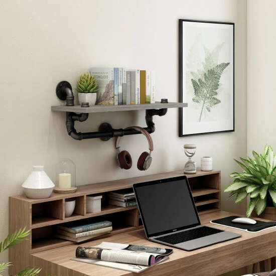 Have some fun with industrial style in your home with this charming little wall shelf. A sand black water pipe frame secures the distressed grey shelf to the wall via an expansion wall anchor. The shelf offers a touch of urban appeal while saving space in any room in your house.
