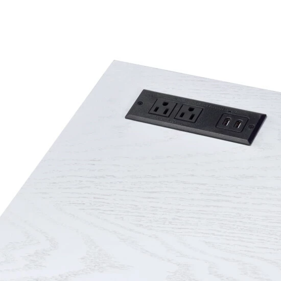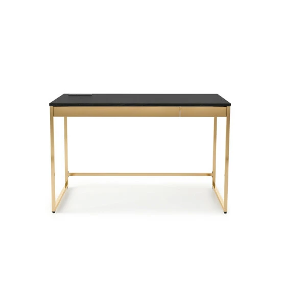 Create a glam workspace with the Arthur computer desk from Furniture of America. The copper-finished steel frame is paired with a veneer desktop, available in two colors. Two drawers and built-in charging ports offer added convenience.