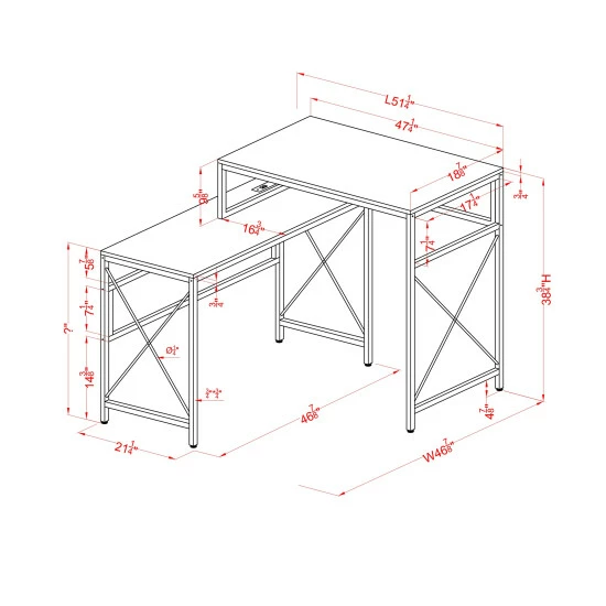 - Right desk dimensions: 39 inches high x 47.25 inches wide x 19 inches deep