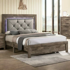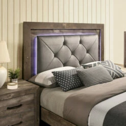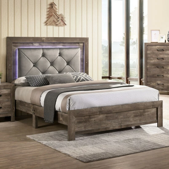 - Padded fabric headboard with LED lighting
