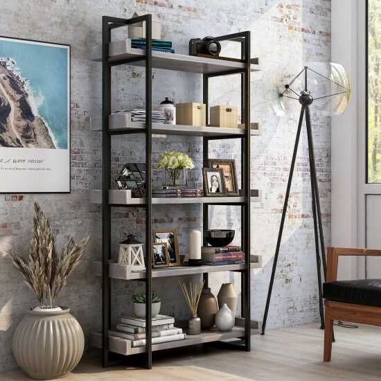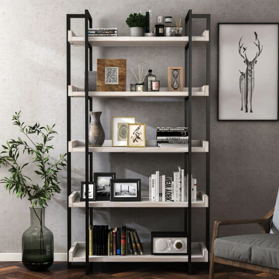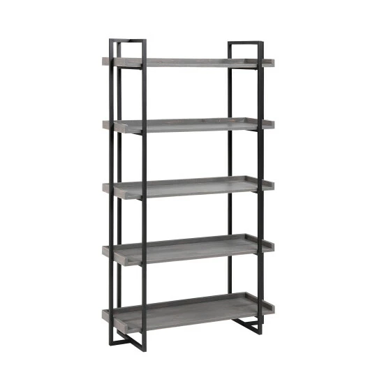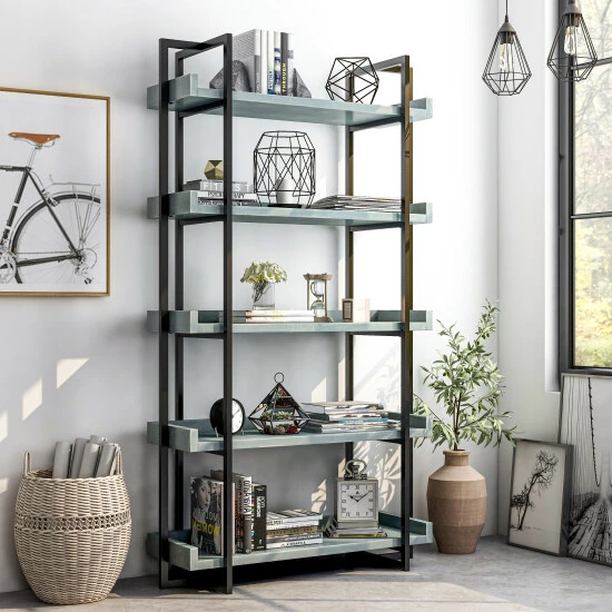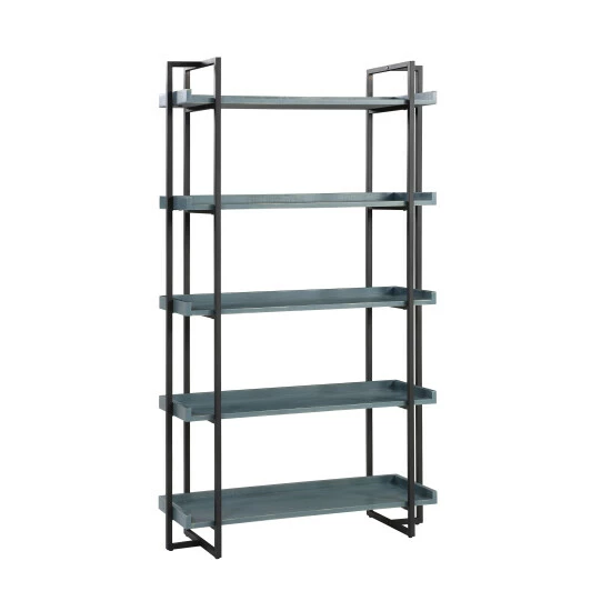 Elevate your home with lovely memories of friends and family utilizing this ladder bookcase. The five shelves extend loads of space to arrange picture frames of loved ones. Its lipped shelving is a casual design, making it excellent for a contemporary home. An antique finish is a modern rustic style that loans current luxury. A gunmetal black stained steel base upgrades the look of the piece while also securing a sturdy and durable shelf. The combination of MDF and Pine veneer provides the shelf with a rustic appearance without cracks, voids, or splinters. Pick between an antique blue or grey varnish. Both choices carry a casual pose that serves well in a living room, home office, or bedroom. Its decorative essence is fitting for candles and other embellishments such as box organizers. Maintain a clean and tidy home with a fashionable shelf that will give your house a more comfortable feel.