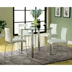 Add a luxurious touch to your home decor with this set of two contemporary dining chairs Furniture of America. This set features a streamlined faux leather upholstery with tufted detailing with a modern flair. Available in a black fabric, these dining chairs are designed with your comfort in mind while enhancing your dining room’s style. The sleek chrome base of the chairs is an incredible upgrade in your dining area. With a built-in footrest and padded seating, you never need to worry about comfort while enjoying dinner. Invite friends and family to gather around your table with this set of two black and chrome dining chairs, creating lasting memories.