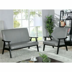 This two accent chairs by Furniture of America completes your living area with its stylish and mid-century modern design. The accent chair features a filled seat cushion and seat back, providing plenty of comfort for anyone lucky enough to take a seat in it. Your new chair is upholstered in a faux leather material for a hint of luxury that’s easy to clean, and blends flawlessly with your existing decor. It proudly boasts a smooth, clean-lined silhouette paired with tapered legs to create a touch of retro appeal. Varying color options make it easy to accessorize your living room with the perfect seating piece.