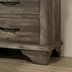 Accent your bedroom with the charm of this grey six-drawer dresser, an alluring addition that adds a rustic touch. Bracket feet supports the dresser, as ball bearing glides for smooth operation while this piece incorporates clean lines in your space.