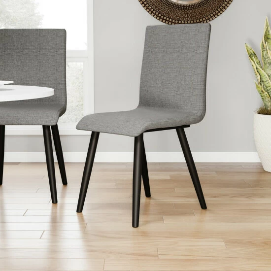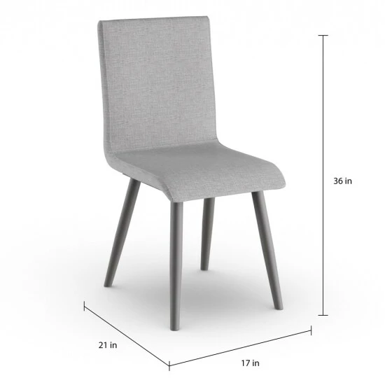 Crafted for style and comfort, this sleek and simple dining chair is sure to maximize the modern feel in your space. Soft grey upholstery atop a metal frame brings serene elegance balanced with mid-century modern flair for some personality and dimension. The durable and supportive design ensures delightful use in your space for years to come.