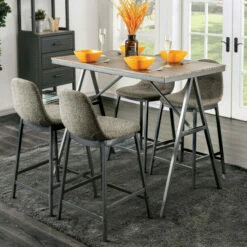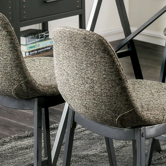 Update your kitchen island or home bar with this set of four Mid-century modern counter height chairs from the Furniture of America Brno collection. This set of four chairs features durable metal base construction in a buffed dark grey finish, complete with footrests for enhanced support for tired feet. Each stool also features a retro-inspired bucket style seat, upholstered in a brindle-like grey faux linen fabric that adds a textural look that is soft to the touch. Button-tufted accents on the backrest add a sleek addition to the vintage look of this furniture set.