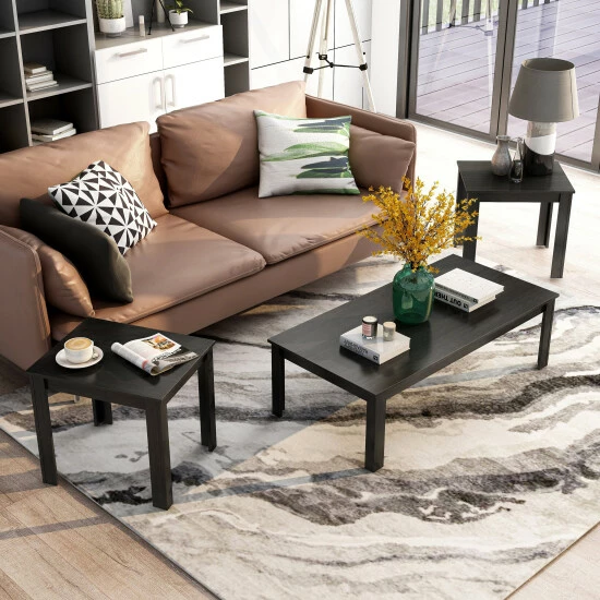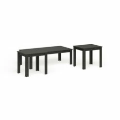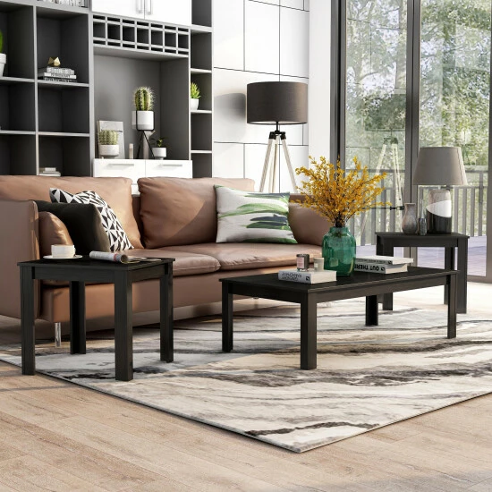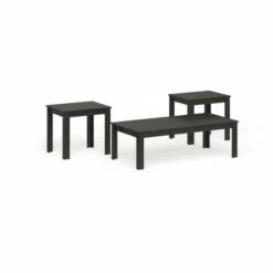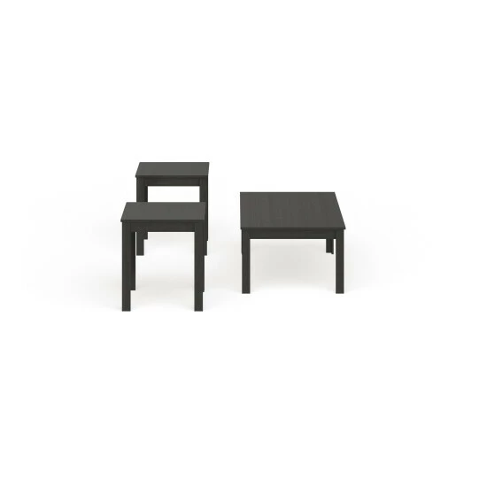 A clean silhouette with straight lines adds complementary style to a modern space, as this three-piece accent table set from Furniture of America becomes a no-nonsense partner to updated casual décor. The Byer table set offers a bold black finish over solid wood and wood veneer construction, creating a sturdy look and feel. Keep it simple and straightforward with tables designed for function as well as aesthetics, A smooth surface on each tabletop adds a bit of sheen. Bring the design power of black to a living room or entertaining space with solid or print upholstered furnishings. This set includes a rectangular coffee table and two rectangular end tables.