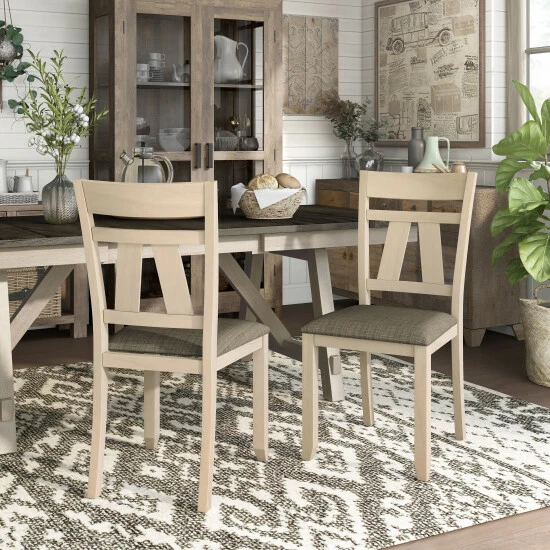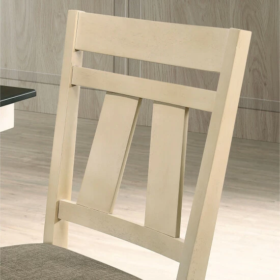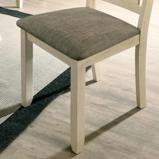 Develop a home aesthetic with more country sensibilities with these two dining chairs from the Caduceus collection. Elegant in their simplicity, the ivory and grey finishes add some contemporary flair to any dining room or bar. The padded fabric seating is warm and pleasantly inviting for guests visiting for dinner. Easily maneuverable to fit with the shape and contours of your home.