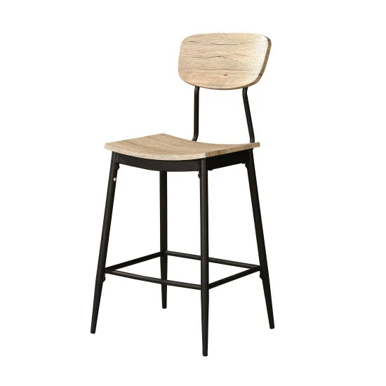 This rustic industrial counter height dining set welcomes colleagues to enjoy a casual end-of-the-week gathering. A bronze-finished iron frame is a strikingly sturdy support with canted legs and tapered feet, guaranteeing satisfaction for years to come. Woodgrain detail of the open backrests and spacious tabletop upholds a country warmth. This is constructed from MDF, an eco-friendly wood product, and PVC, a durable surface material.