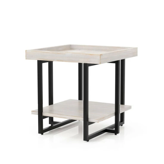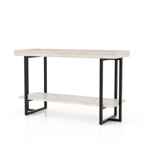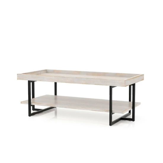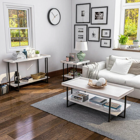Make your living area more fashionable and function with this three-piece table set. Coming with an antique white coffee table, end table, and sofa table, these pieces provide plenty of space for storing items and displaying decor. Raised table edges keep items secure while all pieces are supported on metal geometric style bases.