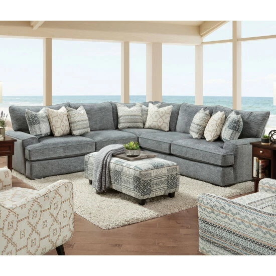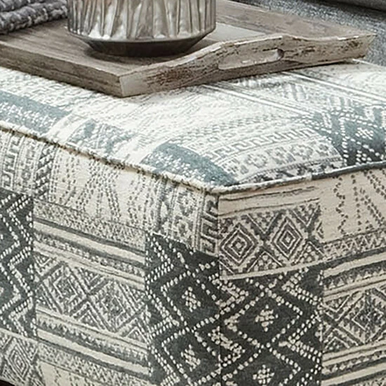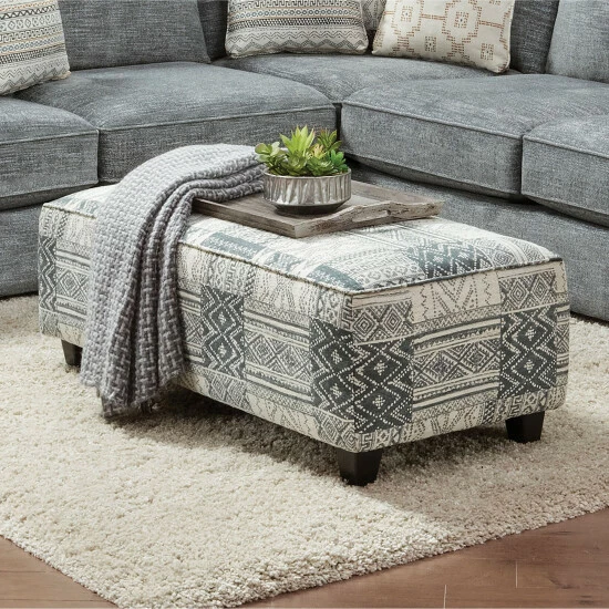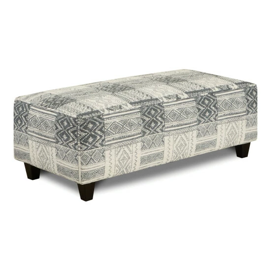 This rectangular ottoman is a functional and stylish addition anywhere in your home. Featuring a plush chenille upholstery in an attractive patterned design, it can function as extra seating or as a coffee table in the center of a seating group. Elevated on dark tapered wood block legs.