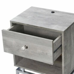 Illuminate your inner fashionista and spread modern chic luster in your home. Elevated by a strong steel base finished in a brilliant silver, this square side table takes notice in a contemporary room. In combination with this unique base, the open bottom shelf expands on the airy look. Keep magazines on hand for guests who visit or store books to read right before bed. A crystal knob invites you to tuck away remotes in the drawer, closeby to the couch or bed. Having a designated spot for this saves you the trouble of searching for the last known place you saw the controller and makes lounging a lot easier. No more feeling in between the cushions and reaching underneath your bed. One USB port advances the modern table and maintains your phone battery at a full charge. Use it beside a couch, bed, or an accent chair in your office!