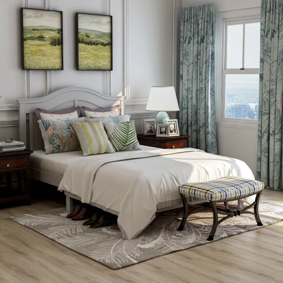Give your bedroom a fresh update with this traditional full-size platform bed from Furniture of America. Built with a solid New Zealand pine wood, this platform bed is sturdy and capable of holding up to long-term use. This timelessly designed bed is ideal for both contemporary and traditional bedroom spaces, with its tall paneled camelback headboard and low-profile footboard.