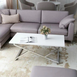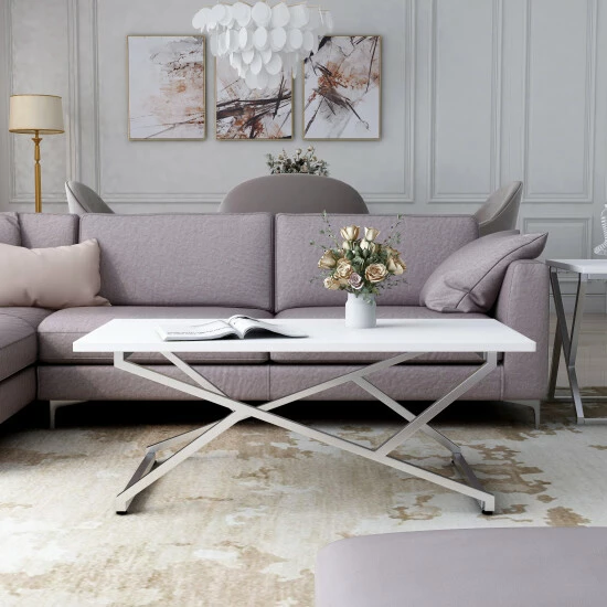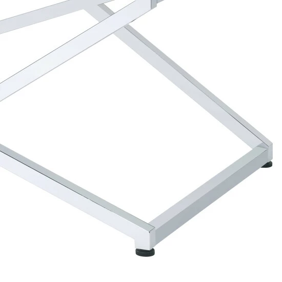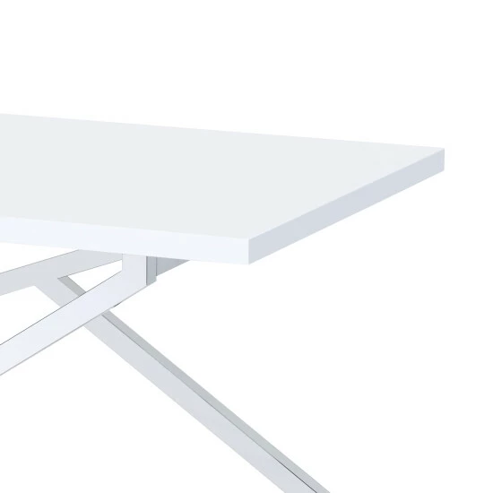 Give your home office a glam touch with this trendy coffee table. Its chrome-plated steel frame is a geometric delight that upholds a beautiful high gloss white tabletop. Your home office is sure to have a clean look!