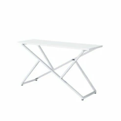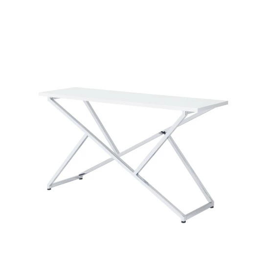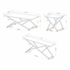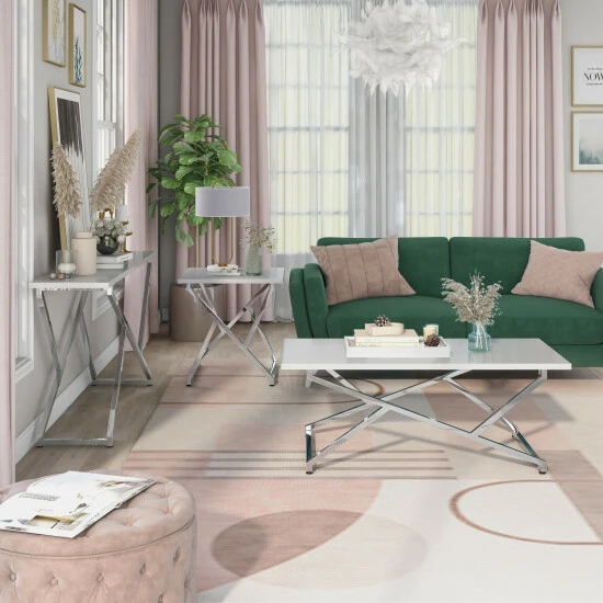Maintain a bright and open space with this set of living room tables. The high gloss white tabletops rest on geometric-designed chrome plated frames. These clean-cut lines are sure to reflect your vibrant character in the home.