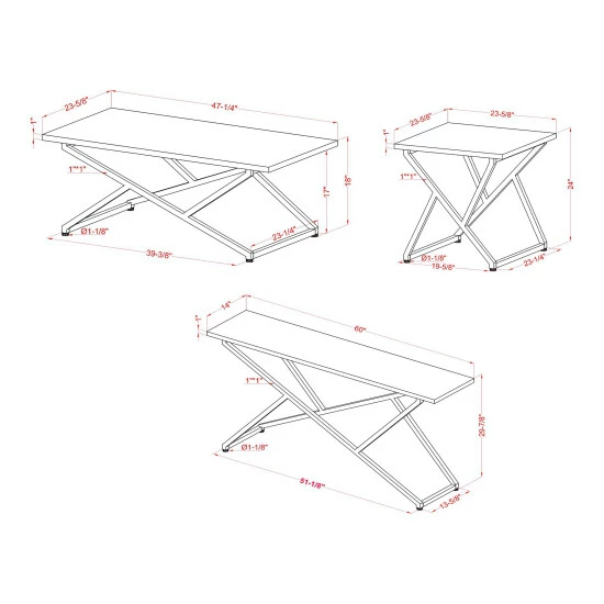 - Includes 1 coffee table, 1 sofa table, and 1 end table