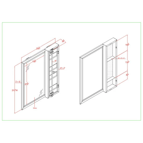 - Mirror: 27.88 inches high x 15.38 inches deep
