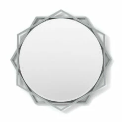 The front hallway will enjoy the bright upgrade of this 5mm beveled wall mirror. Featuring a starburst frame in a rich champagne or brilliant chrome finish and constructed from metal and MDF, this mirror has style and durability that’s sure to please.