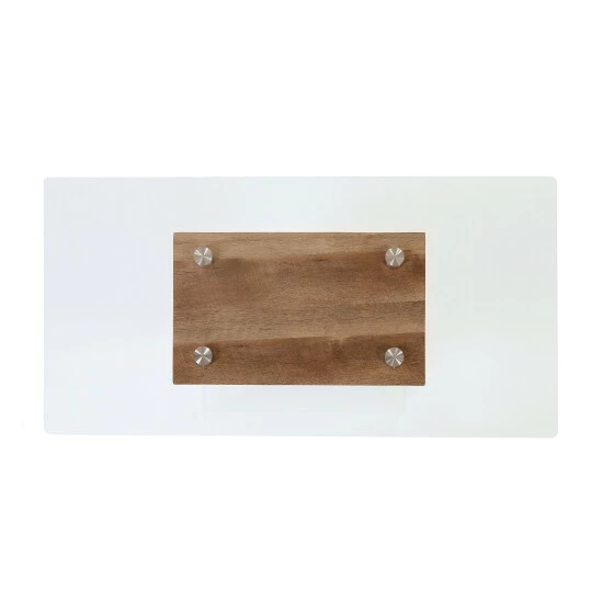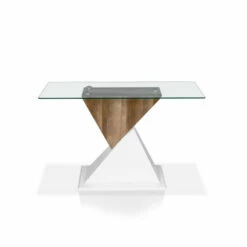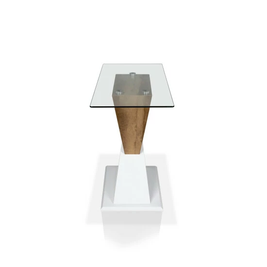 Create a coordinated, cool and contemporary look in your living room with this Cath Collection accent sofa table by Furniture of America. The white geometric base pairs nicely with the appealing rectangular glass tabletop, providing an unexpected two-tone design to inject contemporary charm into your space. The wonderful natural finish plays off the contrasting white finish of the base with contemporary and modern appeal. Stunning and sleek, the beveled tempered glass top elegantly displays your centerpiece or decorative items. This spectacular and angular set is ideal for transitional living areas, made from MDF and glass for maximum durability and strength.