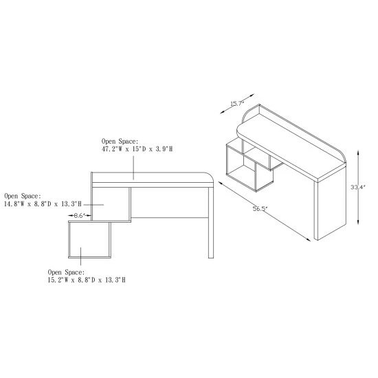- Desktop dimensions: 3.9 inches high x 47.2 inches wide x 15 inches deep