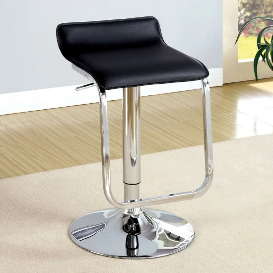 Choose the Ced contemporary swivel bar stool to make a design statement in a casual modern space. Its novel design suggests a turn in modern thinking that repurposes classic retro style. From Furniture of America, this dynamic bar stool offers a brilliant chrome finish metal frame with a round base and a novel U-shaped footrest that becomes a prominent part of its design. A sensually curved waterfall seat is wrapped in smooth faux leather, adding a defining contrast. Enjoy the ability to swivel a full 360 degrees and adjust its height setting with a pneumatic gas lift system.