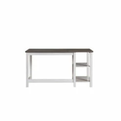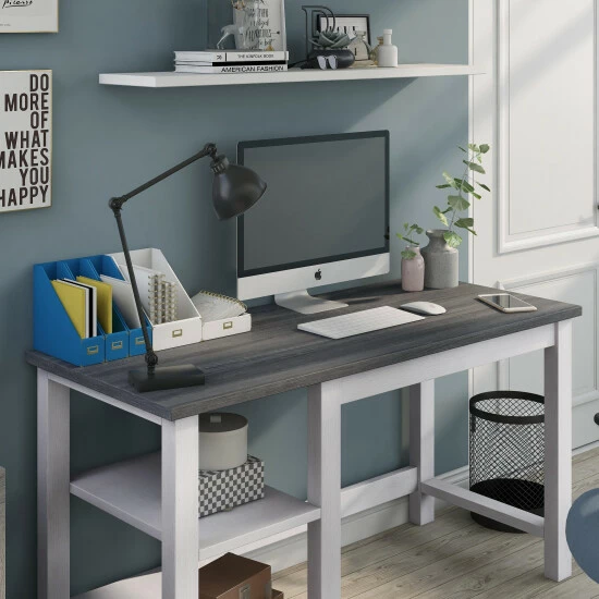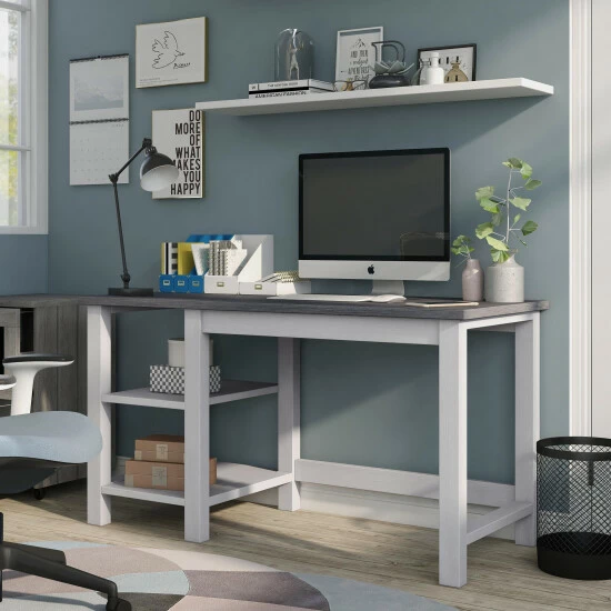 This white oak and distressed grey desk is a modest design. Its neutral nature makes for the perfect addition to a modern farmhouse home. Two open shelves offer easy access to textbooks and notebooks.