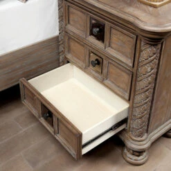 Ripe with traditional design details, this three-drawer nightstand is the perfect addition to an elegantly rustic bedroom. Faux wood carvings add ropes and florals to columns and bun feet while drawer fronts are highlighted with mirror insets and round knobs.