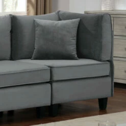 Invitingly plush whether it’s time for a nap or hosting friends, this contemporary three-seat sofa provides comfortable seating. Tall side cushions and tight upholstery feature velvety soft grey fabric that lends a modern look to a clean, precise silhouette.