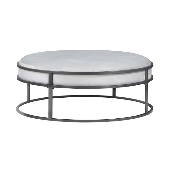 Reinvigorate your living room with the chic style and versatility of this round ottoman. A metal frame and velvety soft upholstery create a compelling combination, delivering an uplifting, airy ambiance to any living space.