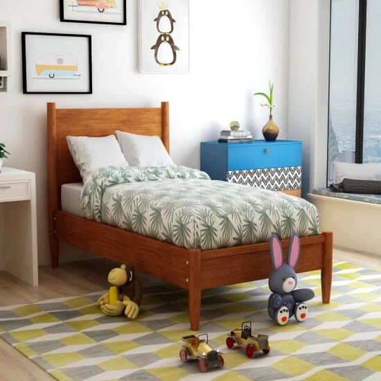 Upgrade your teen’s sleeping space with the Coop platform bed from Furniture of America. The rubberwood frame features a smooth panel headboard and round, tapered legs. Choose from two sizes and four finishes to match your mid-century modern decor.