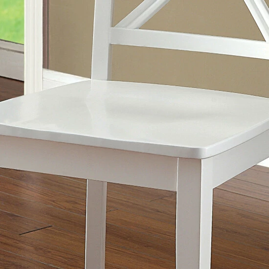 A bright lively design that oozes simple style and elegance highlights this transitional set of 2 side chairs from Furniture of America. The chairs are crafted with rubberwood frames in a chic white finish that lights up any room. The contoured wooden seats are designed for comfort even during long meals and after-dinner conversations, while the cross-back designs offer style. Topping off the look are solid block legs that taper slightly, all coming together in a set of chairs with chic country appeal that bring your dining space alive with country vibes you and yours will cherish for years to come. X-shaped back design for breathability and measures 38 inches high, 18.25 inches wide, and 21 inches deep.