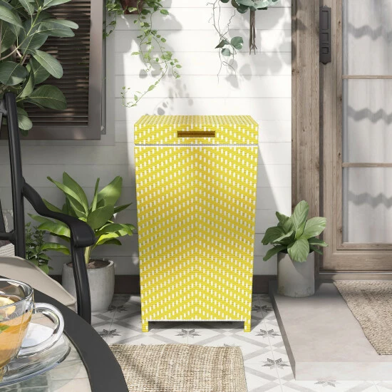 This outdoor basket merges effortlessly with your poolside lounge. The plastic wicker and aluminum frame is fade and weather resistant. So, you can enjoy the summer with a pool party without the clutter of used towels to collect after. Simply let your guests know to drop their towels in the hamper as they dry up and head out.