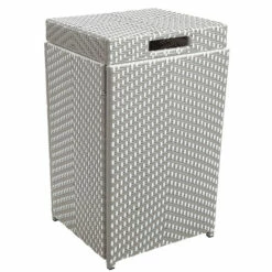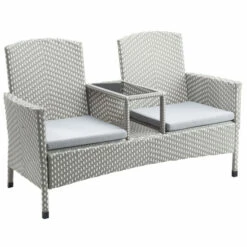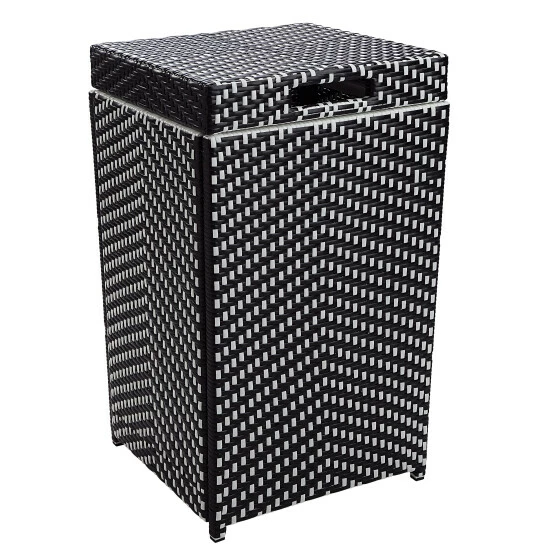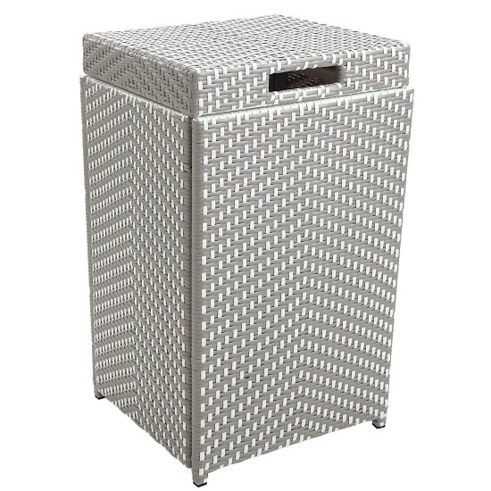 Elevate a patio with this two-piece contemporary loveseat and trash can set, featuring a two-tone wicker and aluminum frame that withstands weather and the elements. The stylish loveseat offers two padded seats for extra comfort and a matching trash can keeps things tidy.