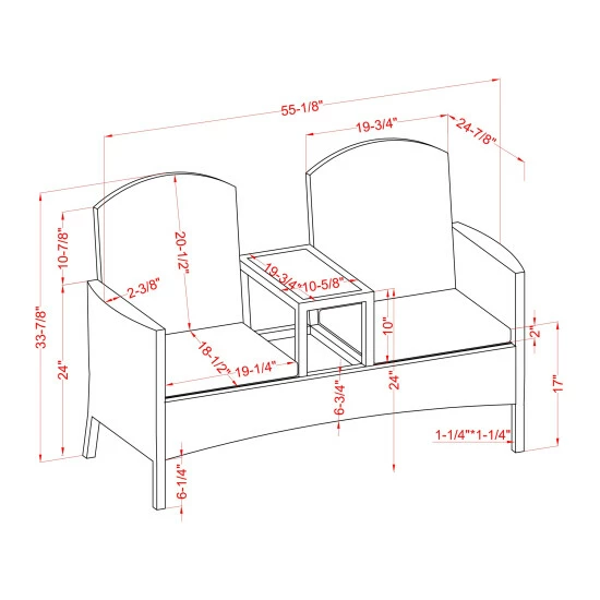 - Overall: 55.13″W x 24.88″D x 33.88″H