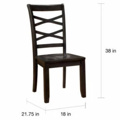 Update your home with this sleek take on a classic design when you add this set of two traditional side chairs from Furniture of America. It’s crafted with the natural beauty of solid wood in a rich espresso finish that gives any space an elegant ambiance. The chairs are crafted with a solid wood design that’s sturdy and durable. Each one features a seat contoured for comfort so you can enjoy those long meals and lively after dinner conversations. There’s also the double X-cross back, which curves and angles back for added comfort when leaning back. The design is topped off by solid block legs that taper, with a slight flare in the back. You’ll love how these chairs create a great impression in any semi-casual dining room or breakfast nook.